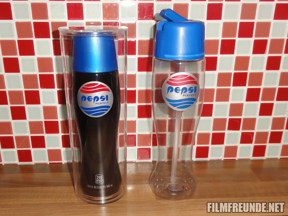 Die Flasche ist nicht 100% so wie im Film. Die Form ist leicht schmaler (laut Pepsi produktionsbedingt), das Ettiket ist anders (laut Pepsi wollte man es der moderneren Zeit anpassen) und die Flasche enthält die notwenigen Aufdrucke für die Inhaltsangaben, denn in der Flasche ist tatsächlich Pepsi – allerdings die normale, die man auch sonst kaufen kann.